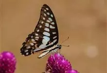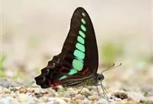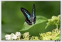青带凤蝶Graphium sarpedon ,又名青凤蝶,是最普遍的中型凤蝶,飞行速度很快。青带凤蝶的翅膀中央有许多浅蓝色的斑点,很整齐地排列成一条直线。这些斑点由上而下逐渐变大,就像一条青色的带子。全部>>
