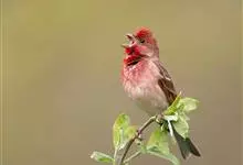 普通朱雀是雀形目雀科朱雀属鸟类,又名红朱雀、马料、青麻料。雄鸟上体红色,下体淡红色;头部、喉部、胸部及腰部亮红色;背部褐色染红色;两翼及尾黑褐色,羽缘染红色。雌鸟上体橄榄褐色,下体近白色,…全部>>