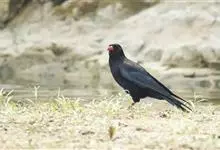 红嘴山鸦,是脊索动物门鸟纲雀形目鸦科鸟类。红嘴山鸦的成鸟通体羽毛纯黑色具有蓝色金属光泽,翼和尾泛有蓝绿色金属光泽;虹膜暗褐色,喙较为尖细,并且呈镰状下弯,喙和脚朱红色。…全部>>