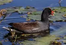 黑水鸡:是鹤形目、秧鸡科的鸟类,共有12个亚种。中型涉禽,体长24-35厘米。嘴长度适中,鼻孔狭长;头具额甲,后缘圆钝;嘴和额甲色彩鲜艳。翅圆形,第2枚初级飞羽最长,或第2枚和第3枚初级飞羽等长,…全部>>