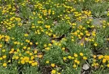 黄晶菊 Durieu)是菊科、菊属二年生草本花卉,黄晶菊株高可达20厘米,茎具半匍匐性。叶片互生,肉质,初生叶紧贴土面。叶形长条匙状,头状花序顶生、盘状。花茎挺拔,花小繁多,花色金黄边缘为扁平舌状花,…全部>>