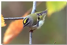 戴菊小型鸟类,体长9~10厘米。上体橄榄绿色。头顶中央柠檬黄色或橙黄色羽冠,两侧有明显的黑色侧冠纹,眼周灰白色。腰和尾上覆羽黄绿色,两翅和尾黑褐色,尾外翈羽缘橄榄黄绿色,初级和次级飞羽羽缘淡黄绿色,…全部>>