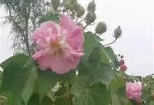 木芙蓉,锦葵科木槿属落叶灌木或小乔木。小枝上有细绒毛;叶片为卵状心形,托叶为披针形,常早落;花单生,花萼为钟形,花冠初为白色或淡红色,后逐渐变为深红色;果实为扁球形,有淡黄色的毛附着。花期8到10月。…全部>>