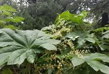 通脱木 K. Koch)是五加科通脱木属的常绿灌木或小乔木,茎干粗壮,叶片宽大,基部为倒卵状长圆形或卵状长圆形,边缘全缘或疏生粗齿,侧脉和网脉不明显;叶柄粗壮,密生白色或淡棕色星状绒毛;花淡黄白色,…全部>>