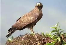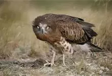短趾雕:体长62-70厘米,体重1.2-2.3千克。它们的颔、颈和胸部上方呈浅棕色。头部浑圆像猫头鹰般,眼睛呈鲜黄色。身体沉重,上体灰褐,下体白而具深色纵纹,喉及胸单一褐色,腹部具不明显的横斑,…全部>>