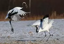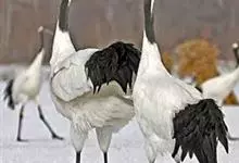 丹顶鹤:是鹤科、鹤属的一种大型涉禽,体长120-160厘米。颈、脚较长,通体大多白色,头顶鲜红色,喉和颈黑色,耳至头枕白色,脚黑色,站立时颈、尾部飞羽和脚黑色,头顶红色,…全部>>