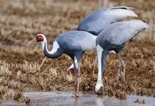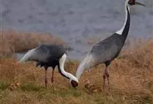 白枕鹤体形与丹顶鹤相似,略小于丹顶鹤,而大于白头鹤。上体为石板灰色。尾羽为暗灰色,末端具有宽阔的黑色横斑。取食时主要用喙啄食,或用喙先拨开表层土壤,然后啄食埋藏在下面的种子和根茎,边走边啄食。…全部>>