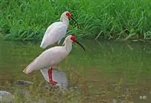 朱鹮是鹈形目鹮科朱鹮属的鸟类动物。其雄鸟通体白色,羽干及两翅与尾等均沾染粉红色;颈项上有很多长矛状羽毛,形成羽冠,耸立时非常夺目;嘴长而向下曲,呈黑色,先端朱红,脚的裸露部分亦呈亮红色。雌鸟羽色略同,…全部>>