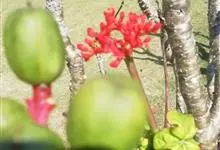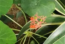 佛肚树是大戟科麻风树属的直立灌木。株高可达1.5米;茎基部或下部通常膨大呈瓶状;枝条粗短,具散生突起皮孔;叶盾状着生,近圆形或宽椭圆形,先端圆钝,基部平截或钝圆,托叶分裂呈刺状,宿存;花序顶生,…全部>>