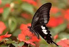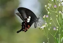 玉斑凤蝶Papilio helenus 别名白纹凤蝶,是凤蝶科凤蝶属美凤蝶亚属大型种类。雌雄同型;体翅皆黑色,后翅正面中室外有3个并列的白色斑,亚外缘有1列模糊的新月形红色斑,…全部>>