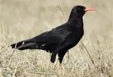 红嘴山鸦,是脊索动物门鸟纲雀形目鸦科鸟类。红嘴山鸦的成鸟通体羽毛纯黑色具有蓝色金属光泽,翼和尾泛有蓝绿色金属光泽;虹膜暗褐色,喙较为尖细,并且呈镰状下弯,喙和脚朱红色。…全部>>