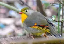 银耳相思鸟小型鸟类,体长14~18厘米。头顶黑色,耳羽银灰色,前额橙黄色;外侧飞羽橙黄色,基部朱红色,极为鲜艳、醒目。尾圆形,尾上、尾下覆羽朱红色,尾暗灰褐色,外侧尾羽橙黄色,其余上体橄榄绿或橄榄黄色。…全部>>