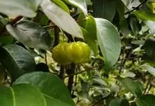 红果仔是桃金娘科番樱桃属的灌木或小乔木。株高可达5米,全株无毛;枝条纤细,稍下垂;叶对生,卵形或卵状披针形,先端渐尖或急尖,基部圆或微心形;花白色,单生或数朵呈聚伞状生于叶腋,…全部>>