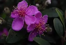 桃金娘 Hassk.),桃金娘科,桃金娘属灌木植物,其高可达2米;幼枝密被柔毛;叶对生,椭圆形或倒卵形;花有长梗,常单生,紫红色,花药圆形;果为浆果,卵状壶形,熟时紫黑色;花期4、5月,…全部>>
