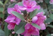 草莓番石榴是番石榴属植物,株高可达2米,树皮平滑,叶对生,倒卵形或椭圆形,先端钝,全缘,厚革质,叶形酷似榕树;花腋生,花冠白色;果实球形或椭圆形,红褐色;在春、夏季开花结果。…全部>>
