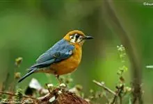 橙头地鸫是鸫科、地鸫属中型鸟类,体长18-22厘米。整个头、颈和下体橙栗色,其余上体包括两翅和尾蓝灰色或橄榄灰色,翅上多具白色翅斑。虹膜褐色或棕褐色,嘴黑褐色或黑色,脚橙黄色或肉黄色。特征极明显。…全部>>