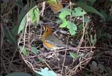 橙头地鸫是鸫科、地鸫属中型鸟类,体长18-22厘米。整个头、颈和下体橙栗色,其余上体包括两翅和尾蓝灰色或橄榄灰色,翅上多具白色翅斑。虹膜褐色或棕褐色,嘴黑褐色或黑色,脚橙黄色或肉黄色。特征极明显。…全部>>
