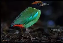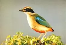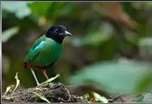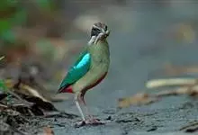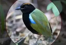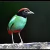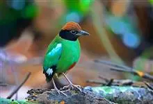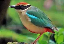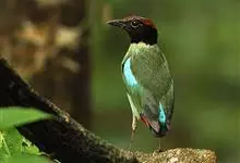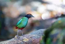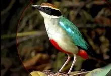 绿胸八色鸫:是雀形目八色鸫科的鸟类,共有12个亚种。体长为16-18厘米,体重65-69克。体型圆胖,尾短,腿长。头黑,上体绿色,两翼深色而具白色斑纹,头顶至后枕深褐,胸及腹部苹果绿,臀亮红。…全部>>