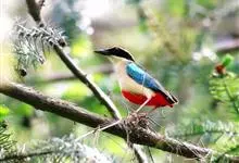 蓝翅八色鸫是雀形目八色鸫科的鸟类。体长17-20厘米,体重类约48-70克,体型圆胖,尾短,腿长,以身体具有红、绿、蓝、白、黑、黄、褐、栗等鲜艳夺目,丰富艳丽的色彩而得名,是很有观赏价值的鸟类。主要…全部>>