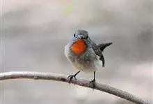 红喉姬鹟小型鸟类,体长11~13厘米。雄鸟上体灰黄褐色,眼先、眼周白色,尾上覆羽和中央尾羽黑褐色,外侧尾羽褐色,基部白色。颏、喉繁殖期间橙红色,胸淡灰色,其余下体白色,非繁殖期颏、喉变为白色。…全部>>