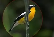 白眉姬鹟是小型鸟类,体长11-14厘米。雄鸟上体大部黑色,眉纹白色,在黑色的头上极为醒目。腰鲜黄色,两翅和尾黑色,翅上具白斑。下体鲜黄色。雌鸟上体大部橄榄绿色。腰鲜黄色,翅上亦具白斑。下体淡黄绿色。…全部>>