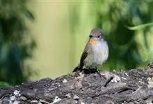 橙胸姬鹟:体长12-16厘米,是一种体型略小的林栖型鹟。尾黑而基部白,上体橄榄褐色,额具一白色横带,两端向上延伸至眼上形成眉斑。翼橄榄色,下体灰。成年雄鸟额上有狭窄白色并具小的深红色项纹,常不明显。…全部>>