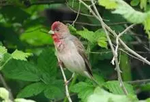 喜马拉雅白眉朱雀:小型鸟类,体长15-17厘米,体重24-35克。额基、眼先深红色,前额和一条长而宽阔的眉纹珠白色沾有粉红色并具丝娟光泽,在暗色的头部极为醒目。头顶至背棕褐或红褐色、具黑褐色羽干纹,…全部>>
