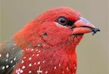 红梅花雀小型鸟类,体长9-10厘米。雄鸟通体朱红色,背、肩、胸等满布白色小斑点,两翅和尾黑褐色均具白色端斑,嘴红色,脚蜡黄色。雌鸟上体淡褐色或赭褐色,翅上中覆羽、大覆羽和内侧飞羽末端具白色斑点,…全部>>
