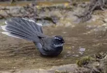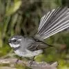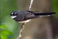 白眉扇尾鹟:体长17厘米,是一种中等体型的灰色扇尾鹟。色彩独特。宽宽的眉纹及前额白色,尾有白色宽边。髭纹白色,与黑色的脸及喉成对比;尾呈扇形,4对中央尾羽黑褐色,邻近两对具宽的白色端斑,最外侧两对白…全部>>