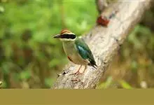 仙八色鸫是雀形目八色鸫科八色鸫属鸟类。雄鸟前额至枕部深栗色,有黑色中央冠纹,眉纹淡黄,背、肩及内侧飞羽辉绿色,飞羽黑色具白翼斑,颏黑褐、喉白,下体淡黄褐色、腹中及尾下覆羽朱红色。雌鸟羽色似雄鸟但较浅淡。…全部>>