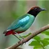 蓝翅八色鸫是雀形目八色鸫科的鸟类。体长17-20厘米,体重类约48-70克,体型圆胖,尾短,腿长,以身体具有红、绿、蓝、白、黑、黄、褐、栗等鲜艳夺目,丰富艳丽的色彩而得名,是很有观赏价值的鸟类。主要…全部>>