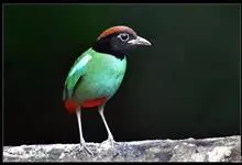栗头八色鸫又叫锅巴雀,体长为24-26厘米,体重100-135克,是雀形目八色鸫科的鸟类。体型圆胖,尾短,腿长,常在森林底层或低植被中找食无脊椎动物。叫声简单哀婉。…全部>>