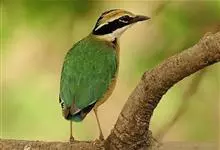 绿胸八色鸫:是雀形目八色鸫科的鸟类,共有12个亚种。体长为16-18厘米,体重65-69克。体型圆胖,尾短,腿长。头黑,上体绿色,两翼深色而具白色斑纹,头顶至后枕深褐,胸及腹部苹果绿,臀亮红。…全部>>