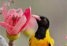黑枕黄鹂又称黄莺、黄鹂、金衣公子等,是雀形目黄鹂科黄鹂属鸣禽。体长23~27厘米,嘴略下弯,粉色;雄鸟整体主要呈鲜明的黄色,黑色过眼纹在额和枕后相连,且在枕后较粗,形成一围绕头顶的黑色宽带;飞羽黑色,…全部>>