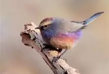 花彩雀莺:体长9-12厘米,是一种毛茸茸偏紫色的雀莺。顶冠棕色,眉纹白。尾长,羽毛松软。前额有一宽阔的眉纹淡黄色,头顶栗色或棕红色,有的具紫蓝色光泽。背灰色,腰和尾上覆羽辉紫蓝色,飞羽灰褐色。…全部>>