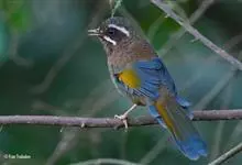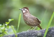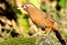 白颊噪鹛是雀形目噪鹛科噪鹛属鸟类,又称土画眉、小画眉、小噪鹃。成鸟额至头顶栗褐色,长眉纹、眼先和颊纹棕白色,眼后至耳羽深褐色,…全部>>