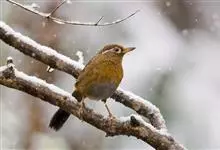 画眉,是雀形目噪鹛属一种鸣禽,别名为文武鸟、金画眉。成年画眉体长为21~25cm,体重为49~75g,眼周具一圈白色羽毛,并向眼后延伸形成一条显著的白色眉纹;上体覆羽呈卡其色,飞羽为暗褐色,…全部>>