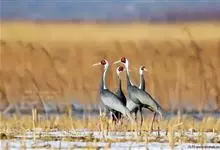 白枕鹤体形与丹顶鹤相似,略小于丹顶鹤,而大于白头鹤。上体为石板灰色。尾羽为暗灰色,末端具有宽阔的黑色横斑。取食时主要用喙啄食,或用喙先拨开表层土壤,然后啄食埋藏在下面的种子和根茎,边走边啄食。…全部>>
