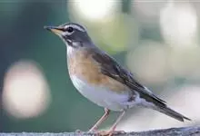 白眉鸫,是脊索动物门鸟纲雀形目鸫科鸫属中等体型的灰褐色鸫类。雄鸟头、颈、顺部至上颈灰色,具白色眉纹和下眼圈,眼先深色,上背至尾上覆羽橄榄褐色,上胸和两胁栗褐色,下胸、腹部和尾下覆羽白色,…全部>>