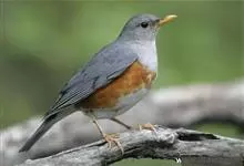 赤胸鸫是鸫科、鸫属中型鸟类,体长22-24厘米。整个头、颈和喉暗橄榄褐色或灰褐色,上体橄榄褐色。胸和两胁橙红色,腹以下白色。下嘴黄色,脚橙黄色具黄色眼圈。虹膜褐色,上嘴褐色,下嘴黄色,脚黄色。…全部>>