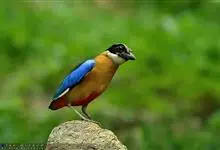 蓝翅八色鸫是雀形目八色鸫科的鸟类。体长17-20厘米,体重类约48-70克,体型圆胖,尾短,腿长,以身体具有红、绿、蓝、白、黑、黄、褐、栗等鲜艳夺目,丰富艳丽的色彩而得名,是很有观赏价值的鸟类。主要…全部>>