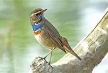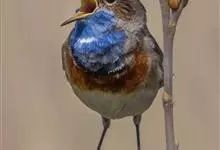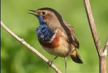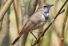 蓝点颏亦称“蓝喉歌鸲”,通称蓝靛颏儿。身体大小和麻雀相似,体长12-13厘米,体重17-18克。头部、上体主要为土褐色。眉纹白色。尾羽黑褐色,基部栗红色。颏部、喉部辉蓝色,下面有黑色横纹。下体白色。…全部>>