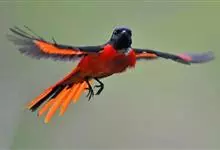 赤红山椒鸟为山椒鸟科山椒鸟属的鸟类,俗名红十字鸟、朱红山椒鸟。雄鸟红色,雌鸟黄色。分布于印度沿喜马拉雅山脉至中南半岛、印度尼西亚、菲律宾以及中国大陆的西藏、云南、福建、湖南、广西、广东、海南等地,…全部>>