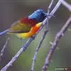 黄腹花蜜鸟是雀形目太阳鸟科花蜜鸟属鸟类。体型较小、喙略短而弯、腹部黄色。雄鸟繁殖季节颏及胸黑紫色并泛金属光泽,具有绯红色及灰色胸带,将上腹部黑色斑与前胸隔开,肩斑为橙黄色丝质羽,上体橄榄绿色,…全部>>