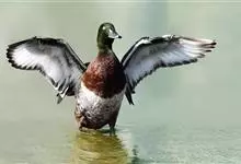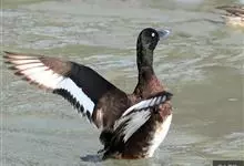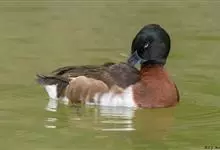 白眼潜鸭属中型潜鸭,个体比红头潜鸭小,和凤头潜鸭差不多。体长33-43厘米,体重0.5千克以上不到1千克。雄鸟头、颈、胸暗栗色,颈基部有一不明显的黑褐色领环;眼白色,上体暗褐色,上腹和尾下覆羽白色,…全部>>