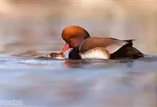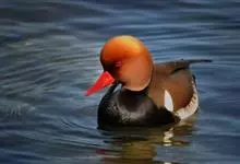 赤嘴潜鸭俗称大红头,是大型鸭类,个体比绿头鸭小,体长45-55厘米,体重1千克左右。雄鸟头浓栗色,具淡棕黄色羽冠。上体暗褐色,翼镜白色,嘴赤红色。下体黑色,两胁白色,特征极明显,野外容易辨别。…全部>>
