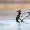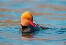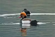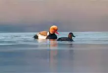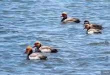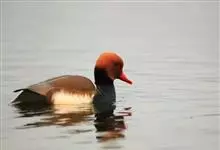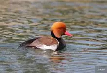 赤嘴潜鸭俗称大红头,是大型鸭类,个体比绿头鸭小,体长45-55厘米,体重1千克左右。雄鸟头浓栗色,具淡棕黄色羽冠。上体暗褐色,翼镜白色,嘴赤红色。下体黑色,两胁白色,特征极明显,野外容易辨别。…全部>>