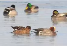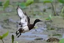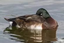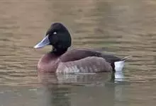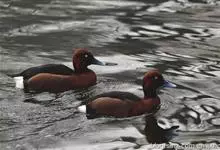 白眼潜鸭属中型潜鸭,个体比红头潜鸭小,和凤头潜鸭差不多。体长33-43厘米,体重0.5千克以上不到1千克。雄鸟头、颈、胸暗栗色,颈基部有一不明显的黑褐色领环;眼白色,上体暗褐色,上腹和尾下覆羽白色,…全部>>