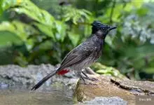 黑喉红臀鹎是雀形目鹎科鹎属鸟类,别称有黑头公、红臀鹎。头顶黑色具光泽;后颈、肩和背暗褐具灰色狭缘;腰羽几纯暗褐,尾上覆羽近白色,羽端浅灰褐色;尾羽褐黑,中央尾羽具狭窄的白色端斑,…全部>>