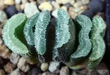 白银寿Haworthia emelyae var.emelyae Poelln.,中文惯称白银寿,是小型多肉植物,原产于南非开普省。肉质叶呈莲座状排列,叶色深绿或红褐色,顶端二角形,稍凸起,透明,…全部>>